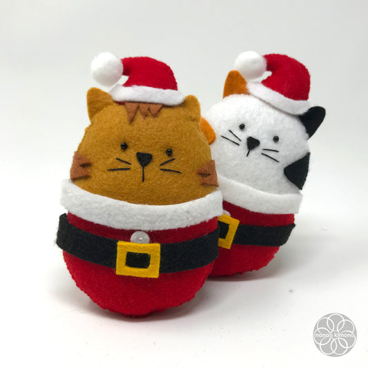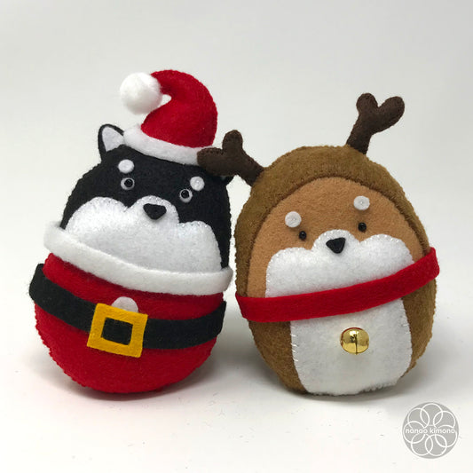 Handcrafted Shiba & Cat Santa ornaments — Made in Canada!