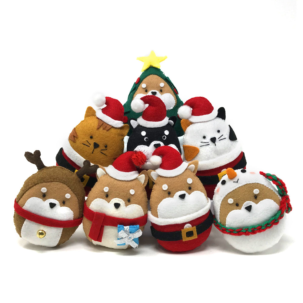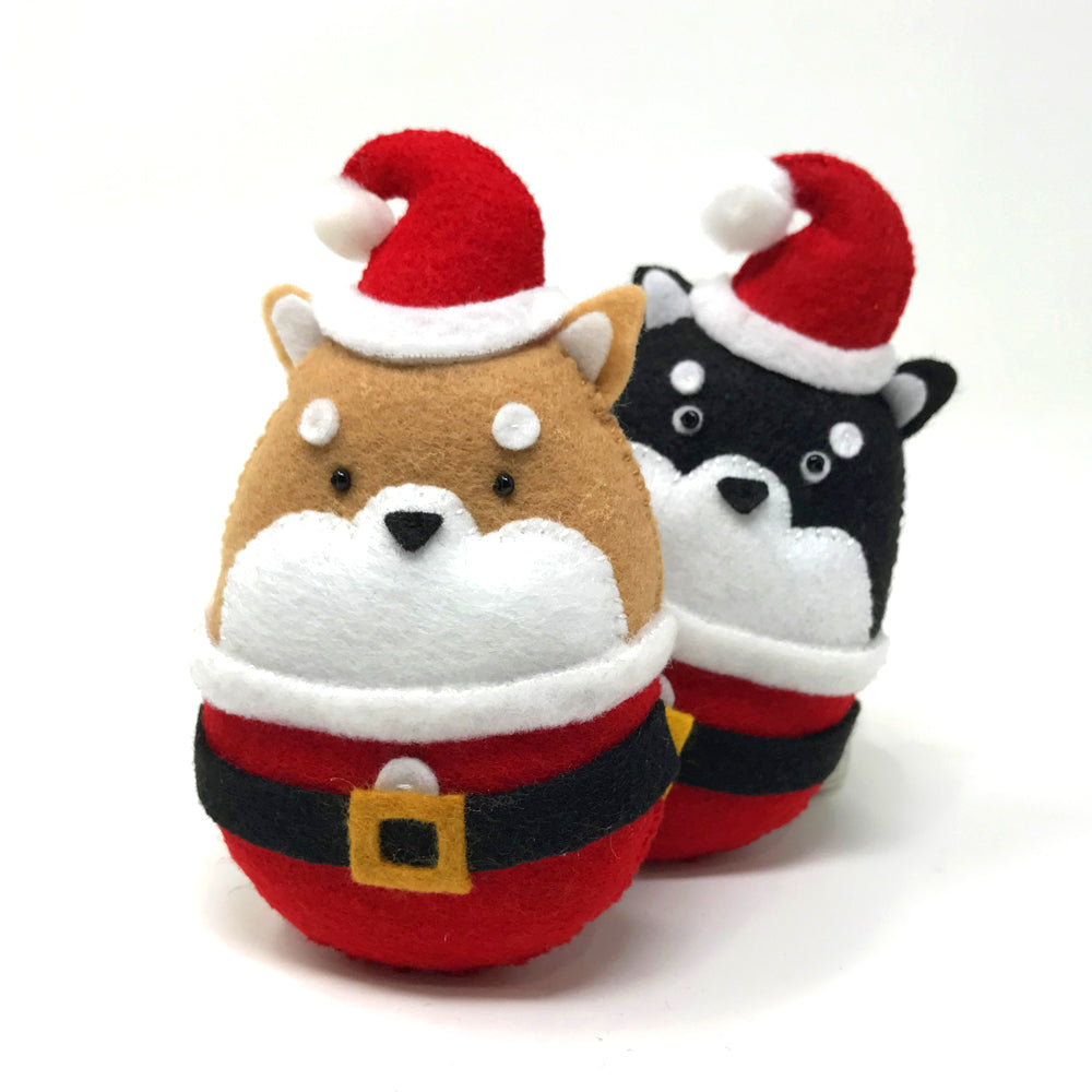 Handcrafted Shiba & Cat Santa ornaments — Made in Canada!