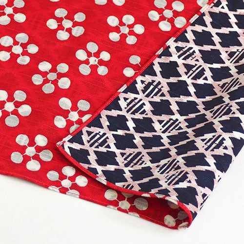 Reversible Furoshiki 19"- Fuku Musubi Japanese Apricot/Pine Bamboo Red/Navy
