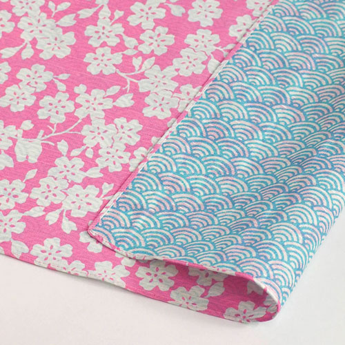 This Fuku Musubi Furoshiki was designed to invite happiness and form connections between people. Each pattern on both sides has a special meaning and has been used since ancient days. Cherry blossoms are believed to make your big dream come true and a pattern of waves in the blue ocean signifies eternal happiness and peaceful lives.
