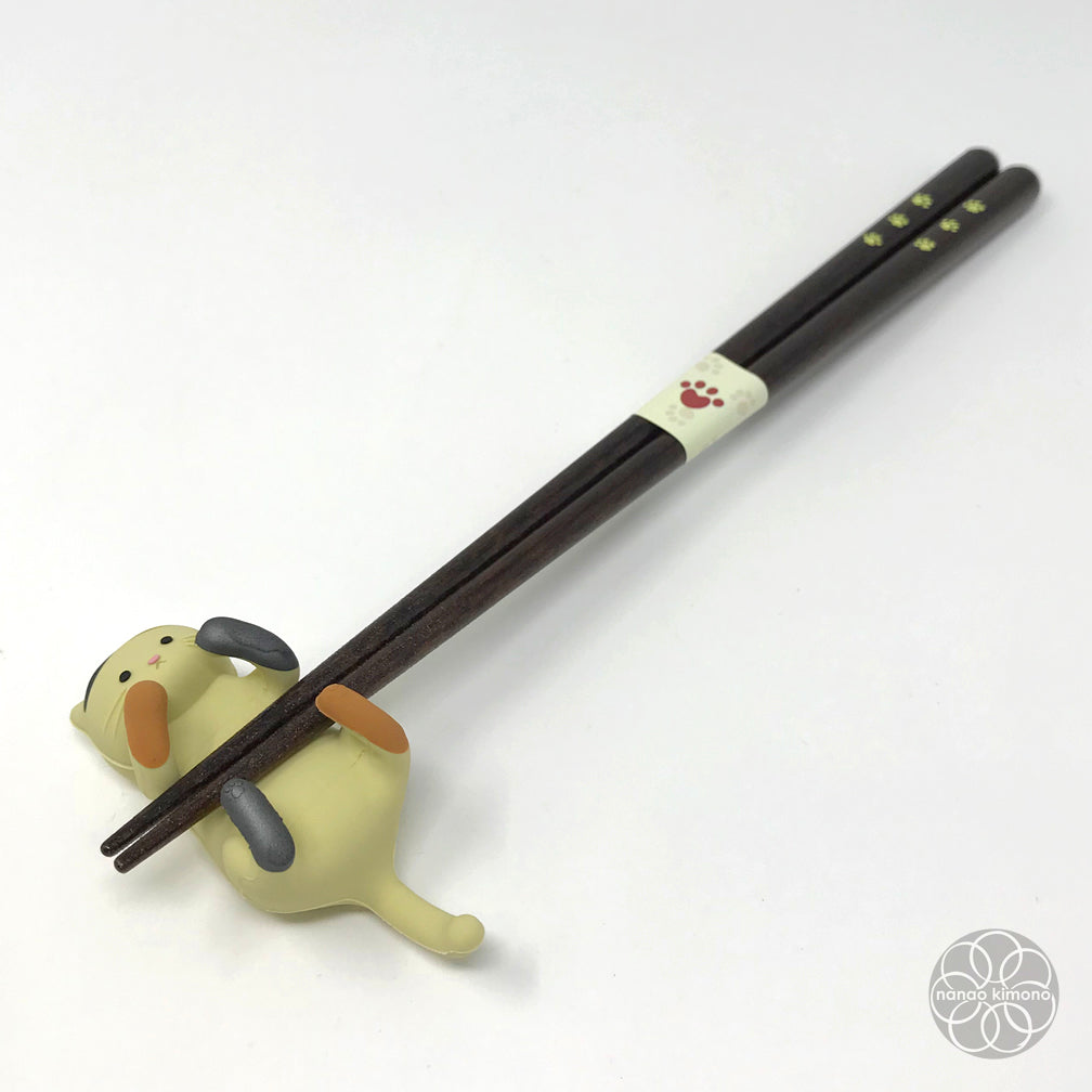 The cute chopsticks with paws printed come with an adorable cat chopsticks rest.