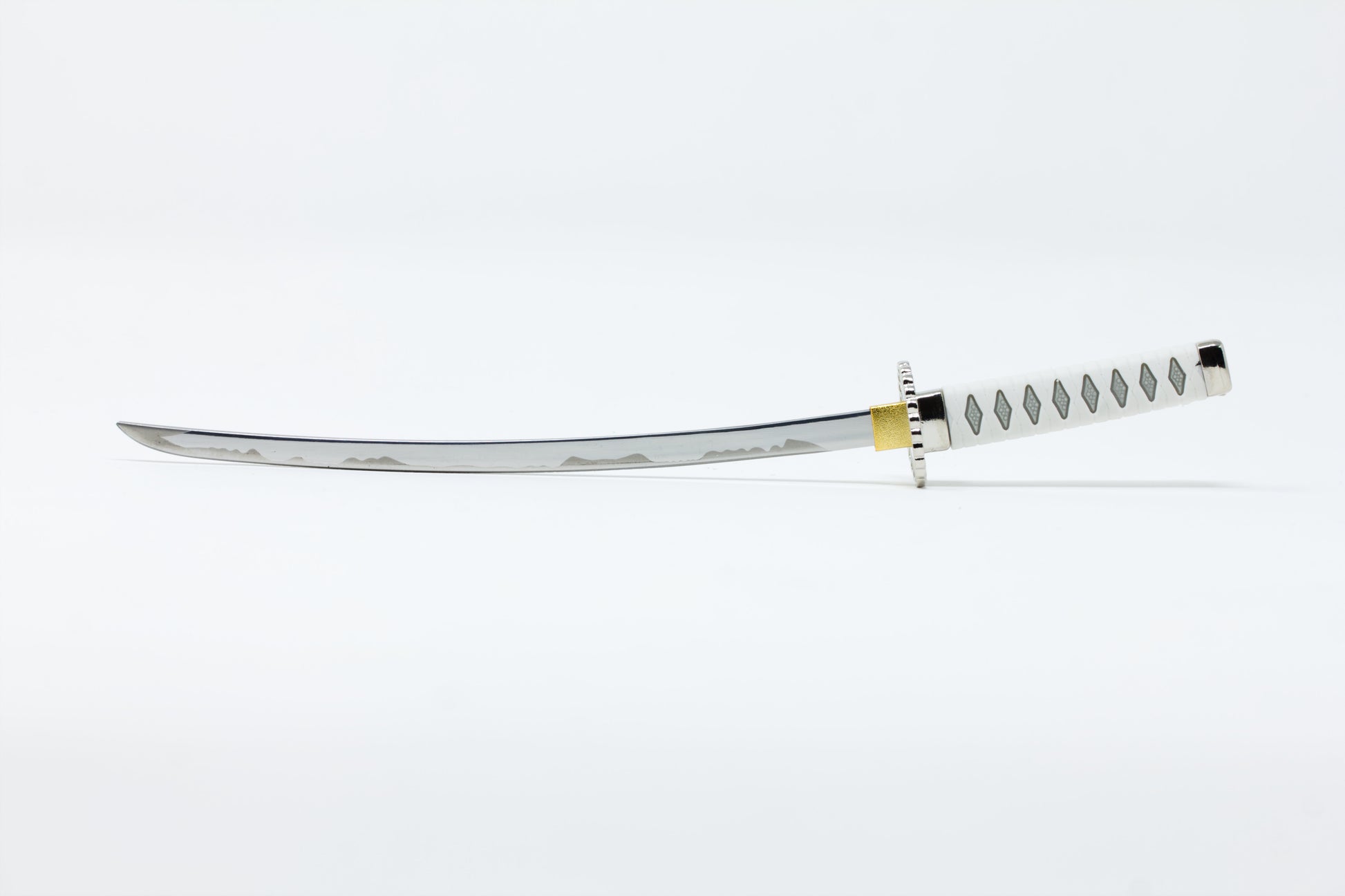 This is inspired by the katana "Kiku Ichimonji," the beloved sword of Soji Okita, the captain of the First Unit of the Shinsengumi and an expert in swordsmanship. The design is focused on the chrysanthemum tsuba and blade patterns.