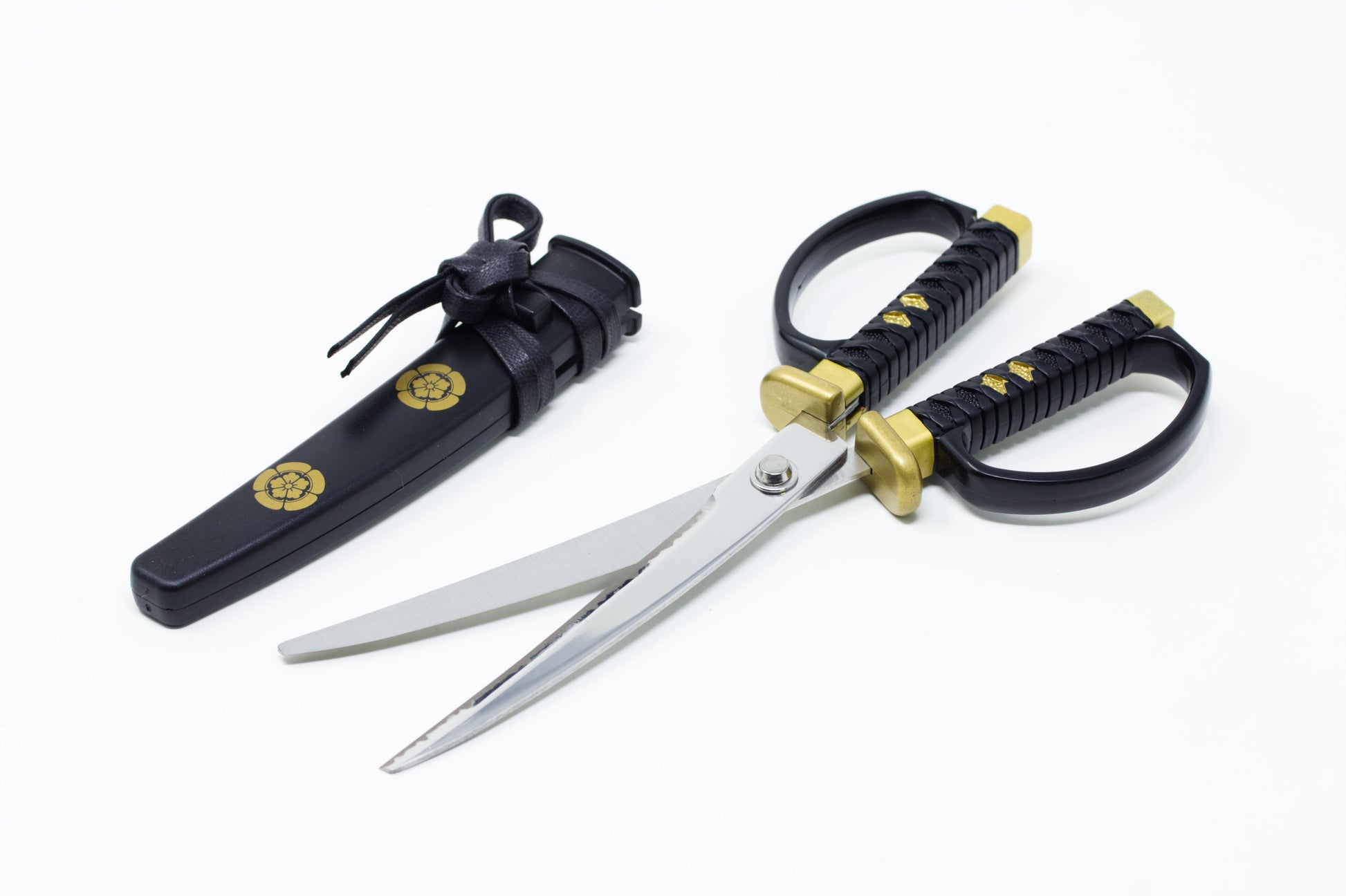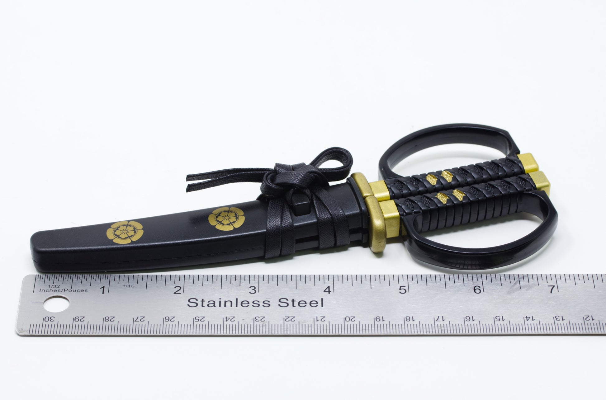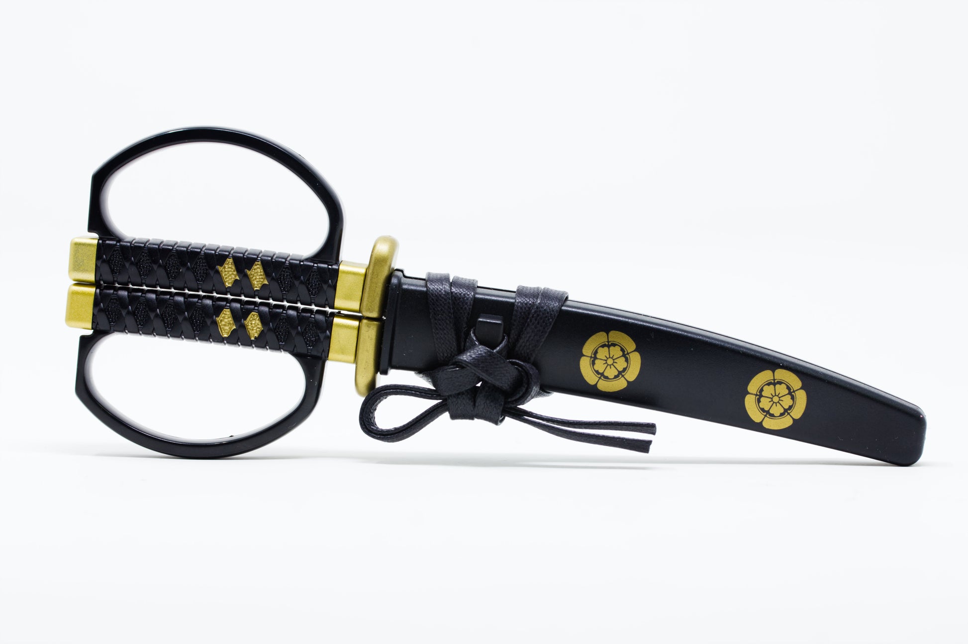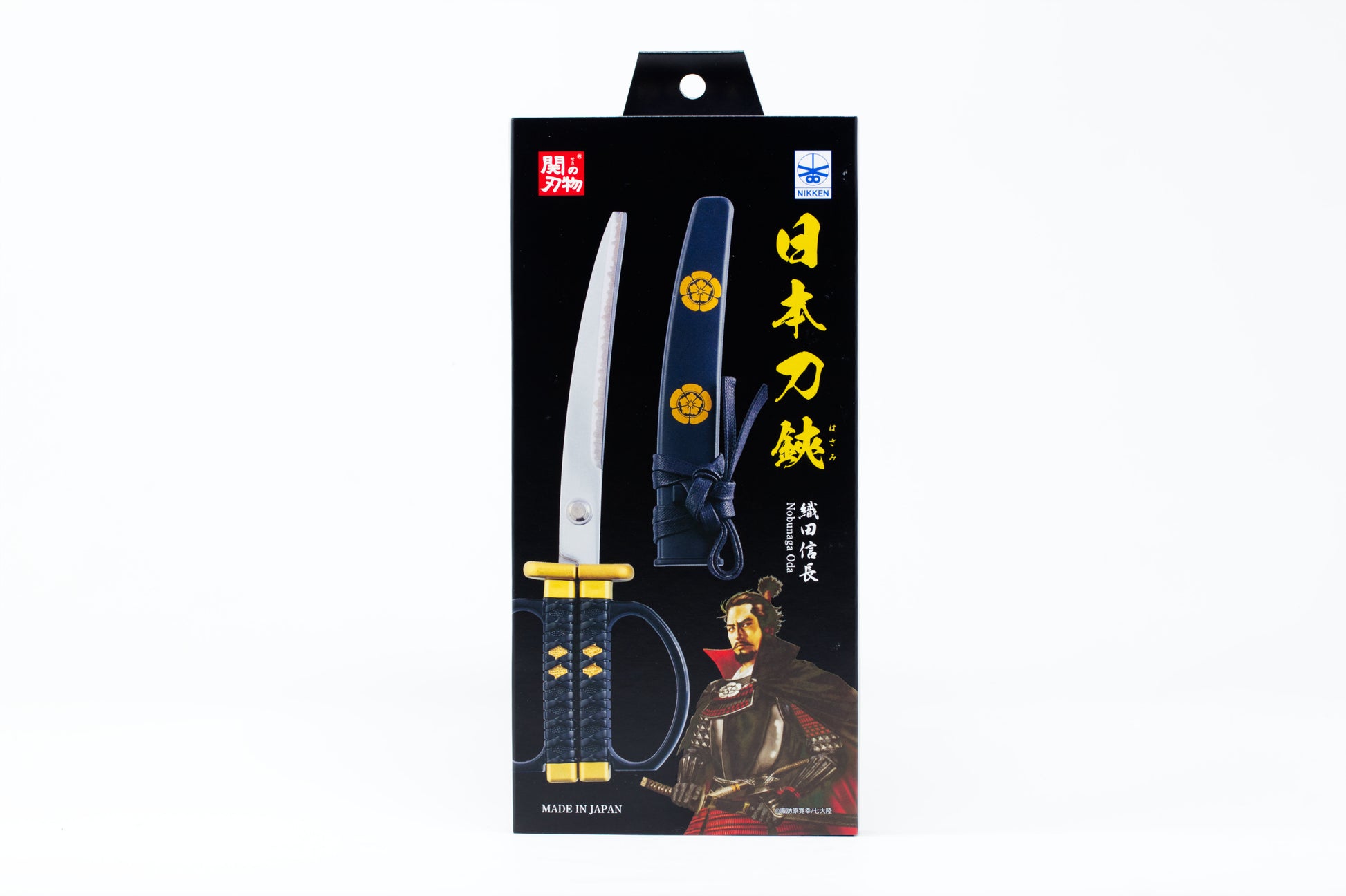 Crafted to resemble the iconic sword of Oda, one of Japan's most renowned samurai warlords, the sheath of the scissors is adorned with his family crest, Itsutsumokou.