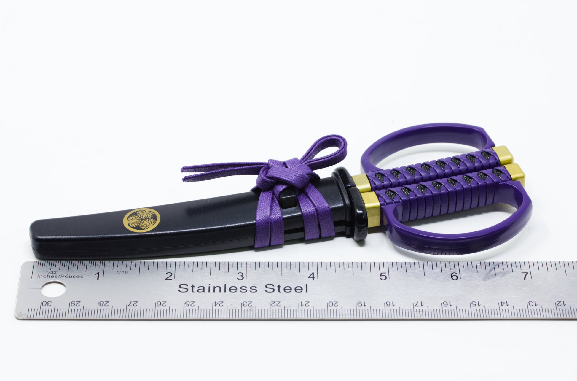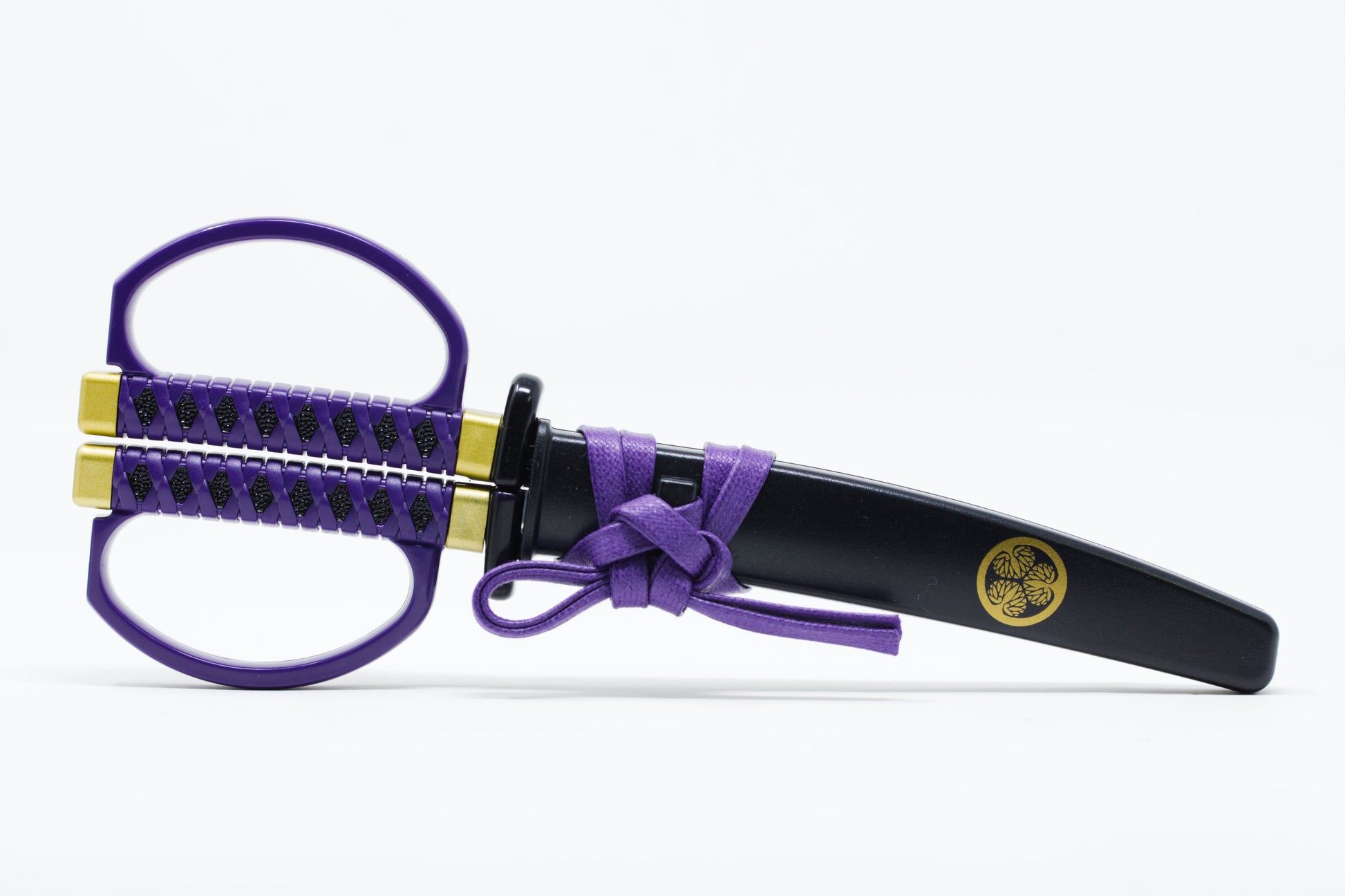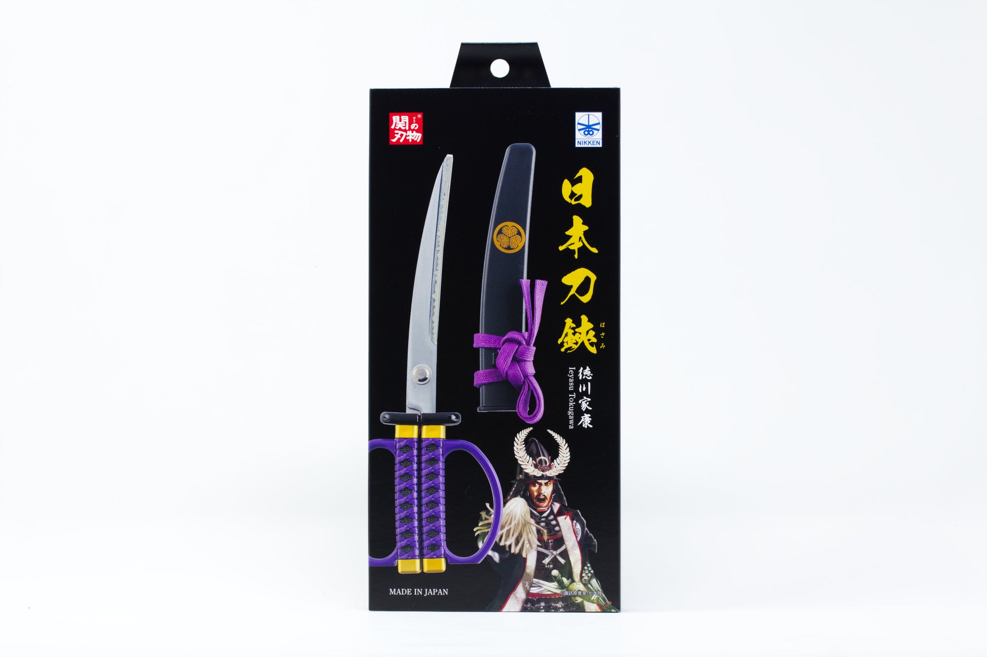 These scissors are modelled after Tokugawa Ieyasu's beloved sword, with the sheath featuring the Tokugawa family crest, the "Aoi Mon" (hollyhock crest). Ieyasu was a pivotal figure in Japanese history who founded the Tokugawa Shogunate, a military government that ruled Japan for over 260 years during the Edo period (1603–1868).