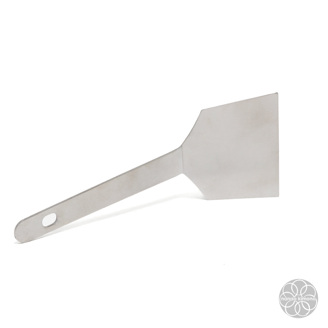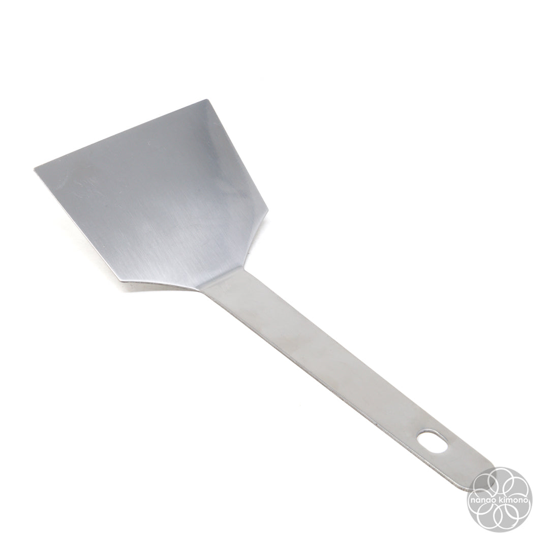 Upgrade your kitchen essentials with this metal spatula, designed for flipping okonomiyaki (Japanese pancakes)! This spatula features a sturdy, flat blade ideal for lifting, turning, and cutting through thick okonomiyaki without bending!