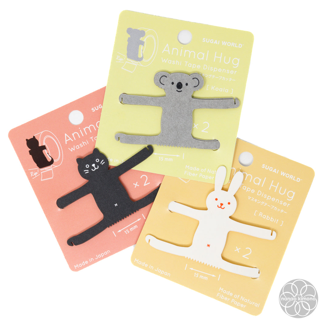Keep your washi-tape cut edges neat by using this super adorable Animal Hug washi tape dispenser! Gently wrap the arms and legs of the Animal Hug around the tape roll. The tape can be cut with a jagged edge on the animal's bottom.